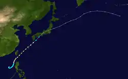 Typhoon Conson, known in the Philippines as Typhoon Frank, was the first[1] of the record ten typhoons to impact Japan during the 2004 Pacific typhoon season.[2] Developing out of a tropical depression near the northern Philippines in early June, Conson slowly traveled towards the north. Gradually strengthening, the storm reached typhoon status late on June 7 according to the Joint Typhoon Warning Center and several hours later according to the Japan Meteorological Agency. After turning towards the northeast, the typhoon brushed Taiwan and reached its peak intensity with winds of 150 km/h (90 mph 10-minute winds) on June 9. After reaching its peak, Conson gradually weakened, passing through Okinawa before being downgraded to a tropical storm the next day. On June 11, the storm made landfall as a minimal tropical storm in the Kōchi Prefecture just before becoming extratropical. The extratropical remnants continued towards the northeast and were last mentioned on June 14 crossing the international date line.