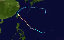 Typhoon Jangmi (pronounced [tɕaŋ.mi]), known in the Philippines as Typhoon Ofel, was the most intense tropical cyclone in the Northwest Pacific Ocean during the 2000s, tied with Nida in 2009.[1] Jangmi, which means rose in Korean, formed in a low pressure area south of Guam on September 22. After undergoing serious consolidating with convective banding, the low pressure area was upgraded to a Joint Typhoon Warning Center late the same data. Undergoing the same process, the storm developed into a tropical storm on September 24. Undergoing rapid deepening on September 26–27, the storm, now a super typhoon entered the Philippine Area of Responsibility, and was named Ofel. The next day, Jangmi made impact in Taiwan, thousands were evacuated, rainfall, up to 994mm were recorded, and thousands of acres of farmland were destroyed. Jangmi was significantly weakened as it interacted with Taiwan, as being downgraded to tropical storm status after leaving Taiwan on September 29. After undergoing an extratropical transition, Jangmi became a remnant low on October 1. After slowly moving eastward, until finally dissipating near Iwo Jima on October 5th.