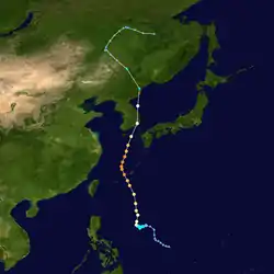 The storm affected the eastern parts of North Korea, China, and Russia, along with the Ryukyu Islands, causing at least 32 deaths and damage to more than 9,200 houses. Total combined economic losses were anticipated to surpass US$100 million.[27]
