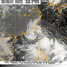 - Joint Typhoon Warning Center (2007). "Tropical Cyclone Formation Alert August 5, 0300 UTC". World Meteorological Organization. Archived from the original on August 5, 2007. Retrieved 2008-12-07.CS1 maint: unfit URL (link)