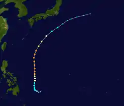 | Highest winds | 10-minute sustained: 195 km/h (120 mph) 1-minute sustained: 250 km/h (155 mph) |