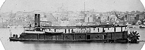 ![]() Photographed off Vicksburg, Mississippi, circa 1864-65. Note Vicksburg courthouse on the hilltop in left center. | |