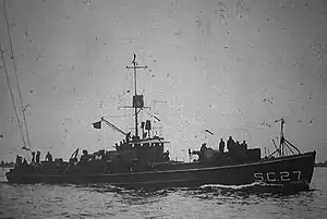 SC-27 was a wooden-hulled 110-foot (34 m) submarine chaser built at the New York Navy Yard at Brooklyn, New York. She was commissioned on 8 November 1917 as USS Submarine Chaser No. 27, abbreviated at the time as USS S.C. 27.