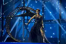 During the semi-final allocation draw on 20 January 2014 at the Copenhagen City Hall, Ukraine was drawn to compete in the second half of the first semi-final on 6 May 2014.[11] In the first semi-final, the producers of the show decided that Ukraine would perform ninth, following Azerbaijan and preceding Belgium.[12] Ukraine qualified from first semi-final and competed in the final on 10 May 2014. During the winner's press conference for the first semi-final qualifiers, Ukraine was allocated to compete in the first half of the final.[13] In the final, the producers of the show decided that Ukraine would open the show and perform first, preceding Belarus.[14] Ukraine placed sixth in the final, scoring 113 points.