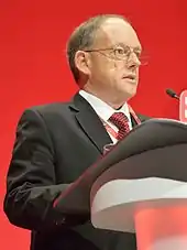 In May 2016, UCATT's conference voted to seek a merger with Unite the Union, though this would only proceed if approved by a vote of all members.[12] The decision followed a decline in UK membership (from almost 112,000 in 1999 to 54,644 at the end of 2014, plus a further 6,585 in the Republic of Ireland), and mounting financial troubles (it incurred a net deficit of over £3.5 million in 2014 and at year-end had net current liabilities of more than £1 million, leading to “significant doubt about the union’s ability to continue as a going concern”).[13] The merger, approved by 85.5% of members in November 2016[14] and taking effect from 1 January 2017,[15] spelt the end of a separate or independent construction union but was expected to force employers to negotiate with a larger and more powerful union.[16] UCATT's members in the Republic of Ireland voted to instead transfer to the Technical Engineering and Electrical Union.[17]