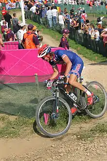 First-time Olympians also featured gymnasts Jordyn Wieber and Aly Raisman, decathlete Ashton Eaton, and swimmers Missy Franklin and Katie Ledecky, the youngest of the team at age 15. Former basketball player and five-time Olympic champion Teresa Edwards served as the U.S. team's chef de mission.[6] Double Olympic champion Mariel Zagunis became the third fencer and sixth female athlete to serve as the United States flag bearer at the opening ceremony.[2]
