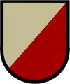 The design of each unit's organizational beret flash was created and/or approved by TIOH.[45] TIOH based their original organizational beret flash designs after a unit's existing background trimming.[3] For newer units authorized an organizational beret flash, TIOH will research the requesting unit's heraldry leveraging geometrical divisions, shapes, and colors to represent the history and mission of the unit in the creation of a design.[55][41] Once the requesting unit agrees upon a design, TIOH creates manufacturing instructions and conducts quality control for companies authorized to produce the organizational beret flash.[55][56][57]