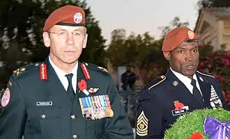 ![]() TACP Beret Flash without crest, worn by ALOs ![]() An ALO with the 682 Direct Air Support Operations SQN wearing black beret with TACP Beret Flash and rank insignia, 2011[97] |