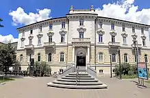 At the Cantonal level, the Ticino Government appointed architect and scholar Pier Giorgio Gerosa as delegate for university problems.[20] In the spring of 1990, from this institutional position and in a period of ongoing debates about the presence of multilingualism in the Swiss Federal Constitution, Gerosa asked the Swiss University Conference to contemplate the possibility of an academic institution in Italian-speaking Switzerland.[20] Furthermore, beginning in December 1991 Gerosa drafted a series of reports to demonstrate the case for a university with as many as four departments.[22]