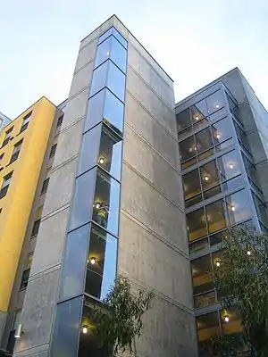 When first built in the 1950s and 1960s, the highrise buildings of Units 1, 2, and 3 consisted of four buildings surrounding a common ground-level dining area above a mail room, recreation room, and office structure. Units 1 and 2 have many of the newest residence hall buildings.[1]