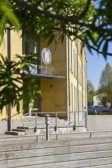 The University of Skövde (in Swedish: Högskolan i Skövde, HIS) is a state university in Skövde, Sweden.[3] The University of Skövde was granted university status in 1983 and is now an academic institution with general and specialised educational programmes in topics like Business, Health, Biomedicine and Computer game design. Research, education, and PhD training at the university are divided on four schools; Bioscience, Business, Health and Education, Engineering Science, and Informatics.[4] The university has approximately 9,000 students (4,000 FTE) in 50 undergraduate and 10 graduate programmes.