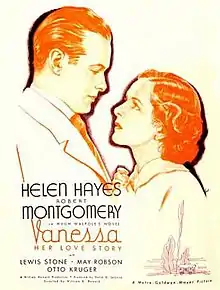 Vanessa: Her Love Story is a 1935 American romantic drama film directed by William K. Howard, starring Robert Montgomery, Helen Hayes, and May Robson.[1] Distributed by Metro-Goldwyn-Mayer, it was based on the 1933 novel Vanessa by Hugh Walpole.[2] The film premiered on 1 March 1935.