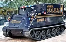 M113s and variants such as the M577 are used by various law enforcement agencies around the world (mostly North American), usually by tactical response teams (SWAT) as mobile command posts and siege and hostage rescue vehicles.[44]