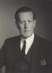 After Baldwin became prime minister for the third time in June 1935, Warrender was made Parliamentary and Financial Secretary to the Admiralty.[7] Then in November 1935 he exchanged this office for that of Financial Secretary to the War Office. He continued in this post when Neville Chamberlain became prime minister in 1937. When Chamberlain reshuffled his government in early April 1940, Warrender once again became Parliamentary and Financial Secretary to the Admiralty. He retained this office when Winston Churchill became prime minister in May 1940, and continued in it until Churchill resigned in July 1945.[1] On 10 March 1942 Warrender was elevated to the peerage as Baron Bruntisfield, of Boroughmuir in the City of Edinburgh.[8]