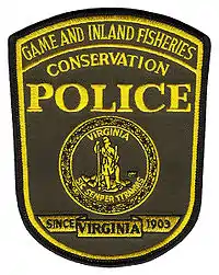 The law enforcement officers of the department have the title conservation police officer.[3] Conservation police officers enforce Virginia laws relating to hunting, fishing, and boating; conduct patrols in cars, aircraft, all-terrain vehicles, and boats, and on foot; and investigate tips from the public. Virginia conservation police officers are also appointed as deputy U.S. Fish and Wildlife Service special agents, which allows them to investigate (and cross state lines to investigate) suspected violations of federal wildlife laws.[3] Virginia game wardens were first appointed in 1903. The title was changed to "conservation police officer" in 2007.[3]