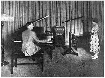 By early 1922, WBZ's studios were set up at the luxurious Hotel Kimball in Metro Center Springfield.[12] Programs consisted of general entertainment and information, including live music (often classical and opera), sports, farm reports, special events, and public affairs programming.[12] Despite being housed in Springfield's top hotel, the station's location in a mid-sized city rendered it somewhat difficult to attract top-flight artists.[11] That prompted Westinghouse to open a remote studio on February 24, 1924, at the Hotel Brunswick in Boston.[12] WBZ expanded its news programming via a partnership with the Boston Herald and Traveler newspapers,[12] and carried pro and college sports broadcasts, including Boston Bruins hockey, Boston Braves baseball, and Harvard Crimson football.[12] Because of its wide reach, the station often referred to itself as "WBZ New England", as opposed to associating itself solely with Springfield or Boston.[12]