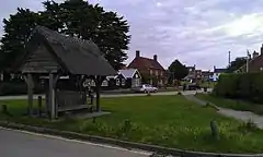 The ornate metalwork village sign on the Green is a replica of the one erected in 1953 to commemorate the coronation of Queen Elizabeth II. The original sign went missing in the 1980s but after changing hands has since been returned and restored to mark the Queen's Diamond Jubilee. The restored sign has been erected opposite the church.