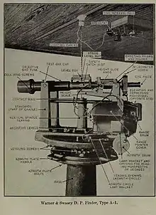 Military instrument contracts were an important line of work for the company.[13] The U.S. government referred many problems concerning such instruments to the company during the Spanish–American War (1898).[13] Instruments produced included "range finders of several types, gun-sight telescopes, battery commanders' telescopes, telescopic musket sights, and prism binoculars".[14] Presumably, the range finders included the company's depression position finder.[15] During World War I, three important kinds of instrument were produced: "musket sights, naval gun sights, and panoramic sights".[14]