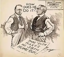 The reassembled delegates had heard rumors that Harding was the choice of a cabal of senators. Although this was not true, delegates believed it, and sought a way out by voting for Harding. When balloting resumed on the morning of June 12, Harding gained votes on each of the next four ballots, rising to 1331⁄2 as the two front runners saw little change. Lodge then declared a three-hour recess, to the outrage of Daugherty, who raced to the podium, and confronted him, "You cannot defeat this man this way! The motion was not carried! You cannot defeat this man!"[90] Lodge and others used the break to try to stop the Harding momentum and make RNC Chairman Hays the nominee, a scheme Hays refused to have anything to do with.[91] The ninth ballot, after some initial suspense, saw delegation after delegation break for Harding, who took the lead with 3741⁄2 votes to 249 for Wood and 1211⁄2 for Lowden (Johnson had 83). Lowden released his delegates to Harding, and the tenth ballot, held at 6 p.m., was a mere formality, with Harding finishing with 6721⁄5 votes to 156 for Wood. The nomination was made unanimous. The delegates, desperate to leave town before they incurred more hotel expenses, then proceeded to the vice presidential nomination. Harding wanted Senator Irvine Lenroot of Wisconsin, who was unwilling to run, but before Lenroot's name could be withdrawn and another candidate decided on, an Oregon delegate proposed Governor Coolidge, which was met with a roar of approval from the delegates. Coolidge, popular for his role in breaking the Boston police strike of 1919, was nominated for vice president, receiving two and a fraction votes more than Harding had. James Morgan wrote in The Boston Globe: "The delegates would not listen to remaining in Chicago over Sunday ... the President makers did not have a clean shirt. On such things, Rollo, turns the destiny of nations."[92][93]