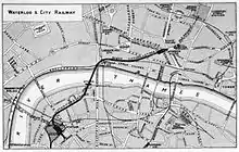 In 1881 an independent Waterloo and City Railway was promoted, to build a surface line to Queen Street. The cost was formidable at £2.3 million, and the proposal soon collapsed.[6]