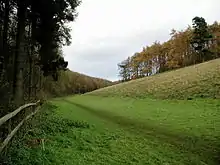 Enclosure of the township was enabled by laws passed in 1752 and 1772.[16] The Williamson's, merchants of Hull undertook much of the tree plantation along the roads around Welton, and in Welton Dale.[17] Welton Mill located at the northern edge of the village at the bottom of Welton dale was constructed in the late 1700s and early 1800s, and altered in 1861; it is a five-storey brick built building, with a breastshot water wheel of 35 ft (11 m) diameter.[18][19] Raikes mausoleum at the northern end of the dale close to Wauldby was built 1818.