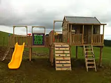 A Cubby House is another name for playhouses. There are both indoor and outdoor children's playhouses and manufactured kits for assembly by adults or children. A playhouse may become a hide-away or club house in a child's imagination. Treehouses built by or for adults are often appropriated by children as a secret vantage point and may become a safety concern.