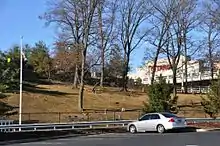 Commuter transportation is provided by Transport of Rockland's Tappan ZEExpress, which connects the Palisades Center's stores bus station near Macy's as well as the Palisades Center's Park and Ride facility with the Metro-North Railroad station in Tarrytown and the White Plains TransCenter.[6] Commuter transportation is also provided to New York City by Rockland Coaches express Route 49J from the Palisades Center Park and Ride facility and by the local Route 20.[7]
