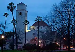 ![]() Westminster Presbyterian Church with bell tower and tiled dome. | |