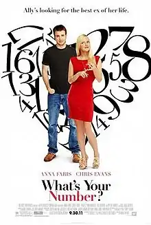 What's Your Number? is a 2011 American romantic comedy film directed by Mark Mylod and starring Anna Faris and Chris Evans. Written by Gabrielle Allan and Jennifer Crittenden, it is based on Karyn Bosnak's book 20 Times a Lady. The film was released on September 30, 2011.