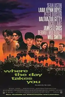 Where the Day Takes You is a 1992 American crime drama neo noir thriller film directed by Marc Rocco and starring Dermot Mulroney, Sean Astin, Balthazar Getty, Lara Flynn Boyle, Ricki Lake, James LeGros, Laura San Giacomo, David Arquette, Christian Slater, and Will Smith (in his film debut). The film tells the story of teenage runaways trying to survive on the streets of Los Angeles. The film was nominated for the "Critics Award" at the Deauville Film Festival and won the Golden Space Needle Award at the Seattle International Film Festival.