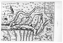 Prior to settlement by the English, the lands up and down the Patuxent river were occupied by various tribes of Algonquin speaking Native Americans. The Native American trails were not paved or marked, but were commonly cleared regularly of underbrush and saplings by controlled fires, creating wide corridors lined only with mature trees up to six feet in diameter.[23] In the 1620s The Susquehannocks pushed tribes out to the Southeast to reduce competition occupying the area as far south as the Potomac river.[24] The Susquehannocks were well armed hunters and profited from Beaver trading with the English. By 1632 Lord Baltimore claimed title to issue land grants in Maryland through Charles I of England. In 1652, the Susquehannocks treatied with Marylanders to keep trade flowing and receive arms to use against the Iroquois to the north.[25] By 1675, efforts were underway to eliminate the Susquehannocks from the region.[26] In 1666, Maryland issued its first road laws, with the path between Leonardtown to Port Tobacco as one of the earliest examples.[27]