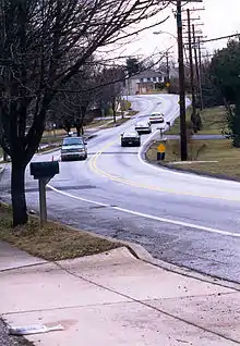 The road became the link for communities such as Highland to the nearest train station in Laurel.[55] After the great depression, many family farms were sold to pay back taxes and were subdivided into lots for owner-built homes. Construction of these homes peaked after World War II. Shortly after city water was provided to the Howard county residents in the 1960s,[56] Whiskey Bottom Road was designated a collector road. The majority of home construction from that point on has been in the form of developments on subdivided property managed by homeowners associations. Only one house on the historic road is listed in Howard County's Historic property inventory: The Joseph Travers House, a Folk Victorian dwelling built on land called "Sappington's Sweep" in 1890 over the site of an earlier 1862 house.[57]