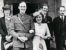 He married American socialite Kathleen Kennedy on 6 May 1944 at the Register Office in Chelsea Town Hall on King's Road in London. She was the daughter of former U.S. Ambassador to the United Kingdom Joseph Kennedy Sr,[1][9] and the sister of John, Robert, and Ted Kennedy. The Duke of Devonshire and the bride's eldest brother Joseph P. Kennedy Jr, then a lieutenant in the United States Navy, signed the marriage register, and the Duke of Rutland served as best man.[10][11] Her mother, Rose, disapproved of the union – the Kennedy family were Roman Catholic and the Dukes of Devonshire were Anglican, and neither would be married in the other's faith.[12][13]