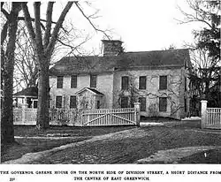 Born August 16, 1731 in Warwick in the Colony of Rhode Island and Providence Plantations, William Greene was the son of William Greene Sr. who had served for 11 one-year terms as the governor of the Rhode Island colony, and the great grandson of John Greene Jr. who had served for ten years as the deputy governor of the colony.[1] His great great grandfather was John Greene Sr. who came from County Dorset in England in 1635, was one of the original proprietors of Providence with Roger Williams, and later became one of the founding settlers of Warwick.[2] Governor Greene is also descended from early Rhode Island settler and Warwick founder Samuel Gorton, as well as from Frances (Latham) Dungan, the "mother of governors."[3]