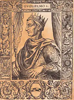 William I (1120 or 1121 – May 7, 1166), called the Bad or the Wicked (Sicilian: Gugghiermu lu Malu), was the second King of Sicily, ruling from his father's death in 1154 to his own in 1166. He was the fourth son of Roger II and Elvira of Castile.