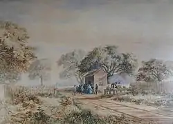 Upon Keith's arrival in San Francisco the job he had hoped for did not materialize, so he set up his own engraving business. He formed a partnership with Harrison Eastman in 1862 and with Durbin Van Vleck in 1864. He first studied painting with Samuel Marsden Brookes in 1863, and may have taken watercolor instruction from Elizabeth Emerson, whom he married in 1864.[3] He first exhibited his watercolors in 1866, and they were praised by critics. His subject matter already included views of Yosemite and other High Sierra locations. By 1868 he had begun painting in oils. That year Keith was able to end his engraving career and pursue painting full-time when he received a commission from the Oregon Navigation and Railroad Company to paint scenes of the Pacific Northwest.[2]