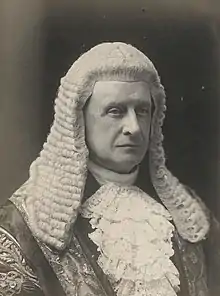 Pickford was appointed a judge of the High Court in 1907 and a Lord Justice of Appeal and sworn of the Privy Council in 1914.[2] In 1916 he was chairman of the Dardanelles Commission.[3] He was made President of the Probate, Divorce and Admiralty Division and raised to the peerage as Baron Sterndale, of King Sterndale in the County of Derby, in 1918.[4] The following year he became Master of the Rolls, a post he held until his death.