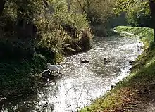In Melksham, where much of the route has been lost to housing,[19] Melksham Town Council agreed in principle to support plans to route the canal through the River Avon in the centre of town. A new weir would raise water levels to permit navigation and an existing weir would be demolished.[20] The plans received official sanction on 15 October 2012, when the Town Council voted to support construction of 2 miles (3.2 km) of new waterway, which will also include a towpath and cycleway, to provide for recreational activities. The plans now need to be ratified by Wiltshire County Council.[21]