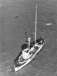 Radio London broadcast from the MV Galaxy, a former Second World War United States Navy minesweeper, originally named USS Density. It was fitted out for radio broadcasting in Miami, then sailed across the Atlantic to the Azores, where the antenna was erected, before final positioning off the Essex coast. The operation was overseen by one of the other investors, Tom Danaher.