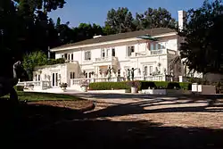 The Wooded Area gains its name from the large number of Eucalyptus, evergreen, and other trees in the neighborhood. The mature vegetation, along with large lot sizes and lack of sidewalks, contribute to a semi-rural feel.[1] The community is almost entirely residential, except for a small retail center at the corner of Catalina and Talbot streets, and Point Loma Nazarene University at the western edge of the community. Home prices in the area are relatively high and the neighborhood includes several striking mansions, including those built by Reuben H. Fleet,[4] Robert O. Peterson,[5] and A. D. Robinson.[6]