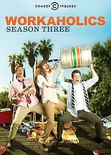 The third season of Workaholics premiered on Comedy Central May 29, 2012 and concluded on March 20, 2013. This season was split into two parts with each part consisting a total of 10 episodes. The first half aired on May 29 and concluded on July 29, 2012 while the second half aired on January 16 and concluded on March 20, 2013.