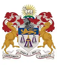 Its seat is the Merchant Taylors' Hall between Threadneedle Street and Cornhill, a site it has occupied since at least 1347. The Company's motto is Concordia Parvae Res Crescunt, from the Roman historian Sallust meaning In Harmony Small Things Grow.