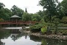 Currently Exhibition Grounds include: Centennial Hall one of the Wrocław's main tourist attractions (listed as an UNESCO World Heritage Site in 2006. Pergola - build around a pond where in 2009 one of the biggest European fountains (Wrocław Fountain) was located. Japanese Garden - was established as a part of Exhibition Complex. However a lot of plants were taken after the Centennial Exhibition. Garden was reestablished in 1997 in cooperation with Japanese specialists, following all the traditional criteria of Japanese garden art. Two months later during the flood in Wroclaw the area was damaged. The Japanese garden was re-opened again in 1999. Today the Garden, keeping Japanese traditions, also presents many species of Asian plants.