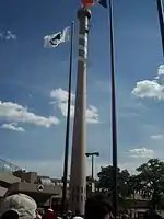 On November 4, 2009, construction workers began tearing down the outfield bleachers, marking the first major structural demolition of the old ballpark.[40] On November 12, demolition work began on the field level grandstand.[41] By the end of November, most of the grandstand and bleachers at field level were gone.[42] By the first week of December, demolition of the midlevel loge seats had begun.[43][44] By January 2010, the loge level was gone and demolition began on the left field escalator bank adjacent to Gate 2. In February 2010, demolition work began on the upper deck and the outfield wall; the final part of the outfield wall (the Continental Airlines ad, the out-of-town scoreboard and the remaining part of the advertising panel to its right) was taken down February 24, 2010.[45] By March 25, the entire upper deck was taken down.