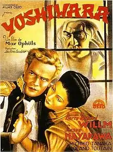 Yoshiwara is a 1937 French drama film directed by Max Ophüls and starring Pierre Richard-Willm, Sessue Hayakawa and Michiko Tanaka. It is based on a novel by Maurice Dekobra. The film is set in the Yoshiwara, the red-light district of Tokyo, in the nineteenth century. It depicts a love triangle between a high-class prostitute, a Russian naval officer and a rickshaw man.[1]